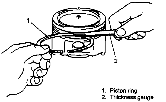Fit new piston ring into piston groove, and measure clearance between ring and ring land by using thickness gauge.