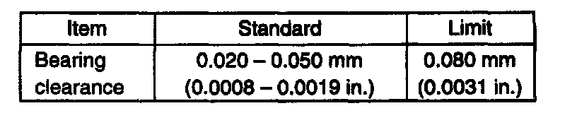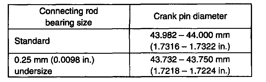 6. If clearance can not be brought to within its limit even by using a new standard size bearing, regrind crank pin to undersize and use 0.25 mm undersize bearing.