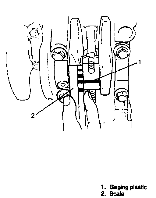 3. Place a piece of gaging plastic to full width of crank pin as contacted by bearing (parallel to crankshaft), avoiding oil hole.