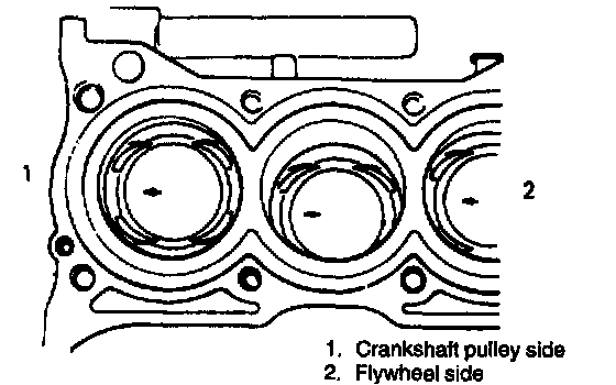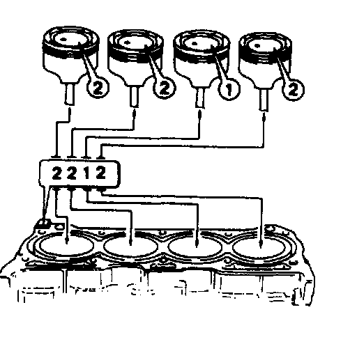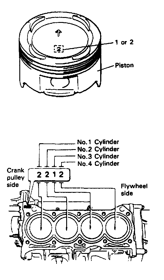 c. Stamped number on piston and that on cylinder block should correspond. That is, install number 2 stamped piston to cylinder which is identified with number 2 and a number 1 piston to cylinder with number 1.