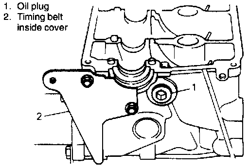 8. Remove rocker arm shaft plug and timing belt inside cover.