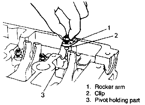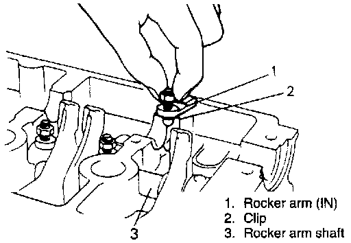 9. Remove intake rocker arm with clip from rocker arm shaft.