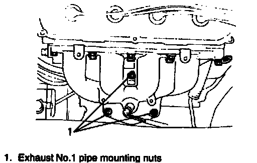 8. Remove exhaust No.1 pipe mounting nuts (3 pcs.).