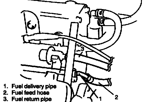 11. Disconnect fuel feed hose from feed pipe and disconnect fuel return hose from fuel pressure regulator.