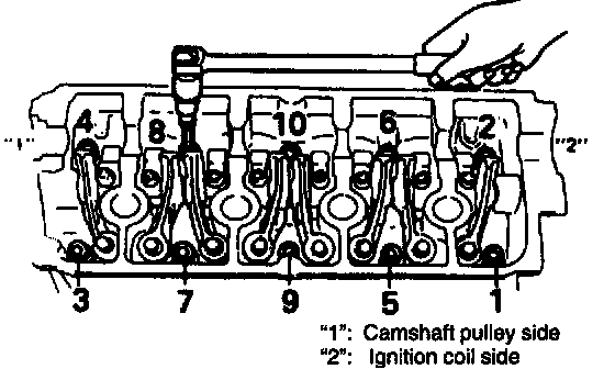 15. Loosen cylinder head bolts in such order as indicated in figure and remove them.