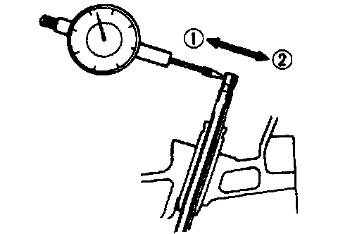 Move stem end in directions (1. and 2.) to measure end deflection. If deflection exceeds its limit, replace valve stem and valve guide.