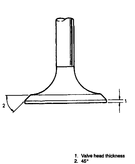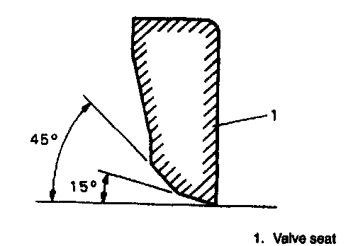 1. EXHAUST VALVE SEAT: Use valve seat cutters to make two cuts as illustrated in figure. Two cutters must be used: the first for making 15° angle, and the second for making 45° angle. The second cut must be made to produce desired seat width.