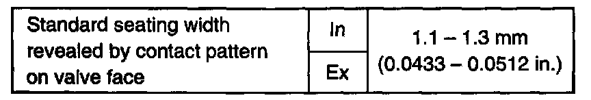 Seat width for exhaust valve seat: 1.1 - 1.3 mm (0.0433 - 0.0512 inch)