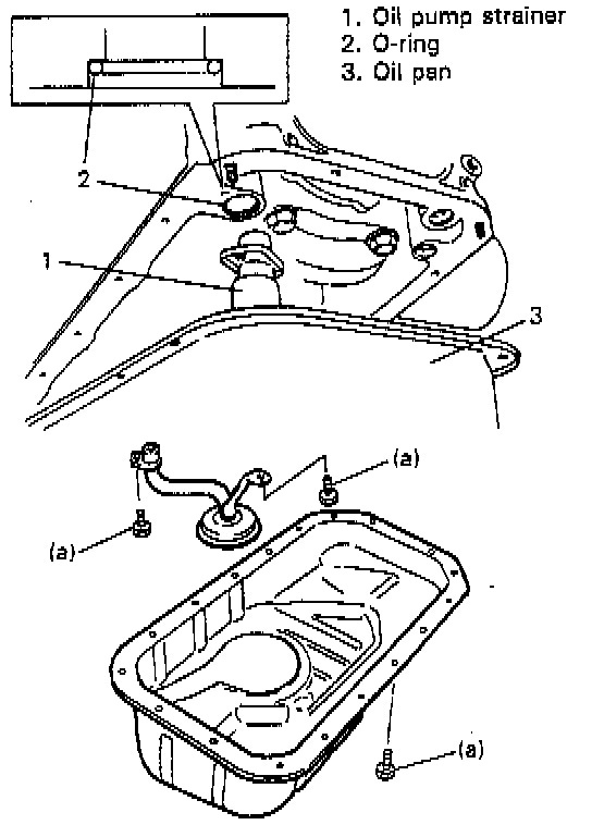 Remove oil, old sealant, and dusts from mating surfaces and oil pan inside.