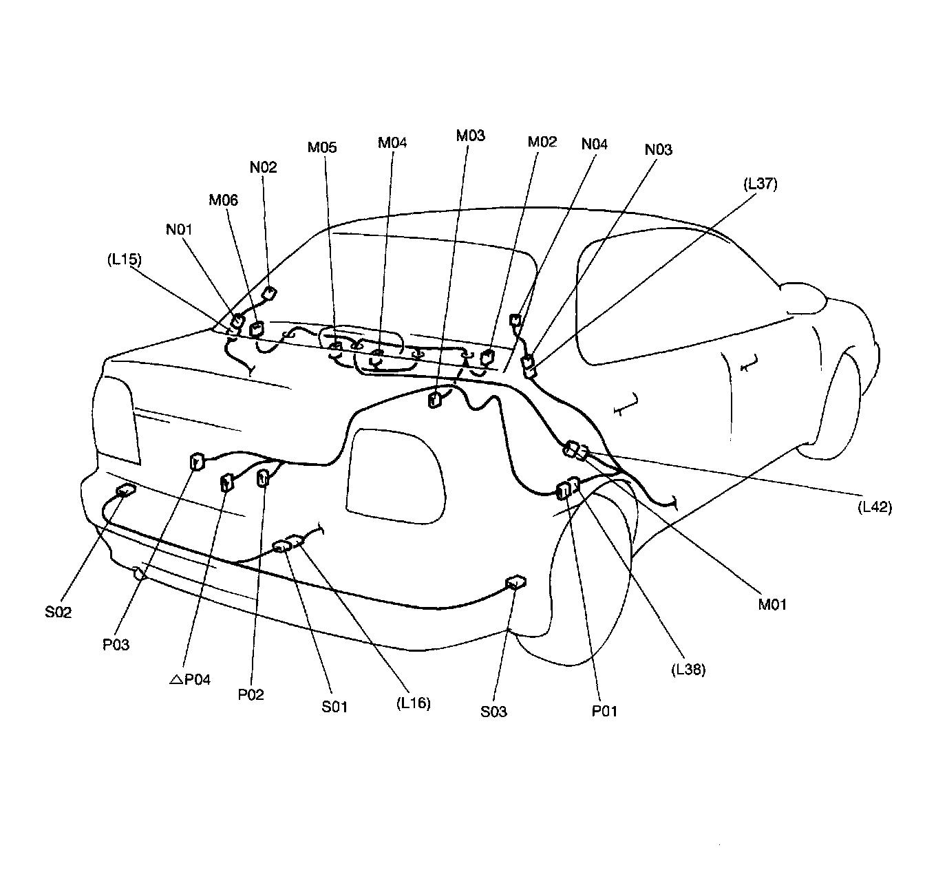 M: Partition Panel Harness, N: Rear Defogger Harness