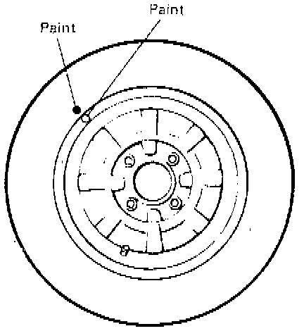 The "low spot" of the wheel is originally marked by paint dot on the wheel rim-flange. Properly assembled, the wheel rims' paint dot should be aligned with the tires paint dot as shown in figure.