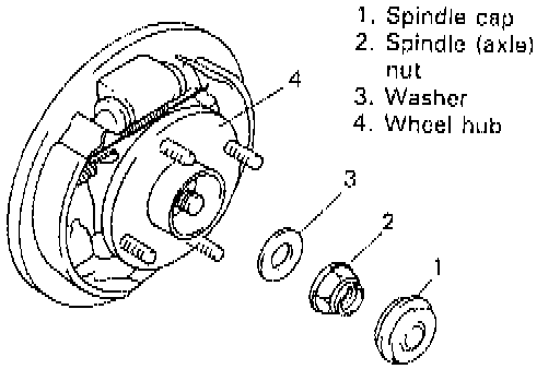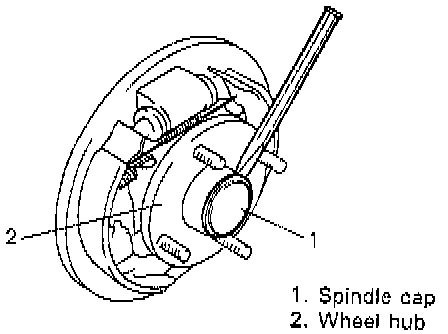 ^ When installing spindle cap, hammer lightly several locations on the collar of cap until collar comes closely into contact with wheel hub.