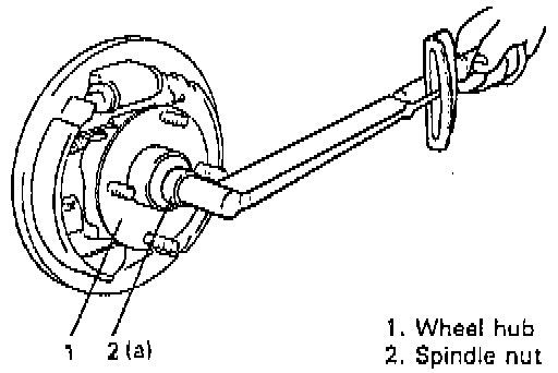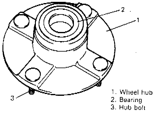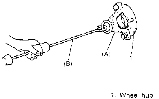 NOTE: Wheel bearing and wheel hub form a solid unit. When wheel bearing is found defective and its replacement is necessary, replace hub assembly.REMOVAL