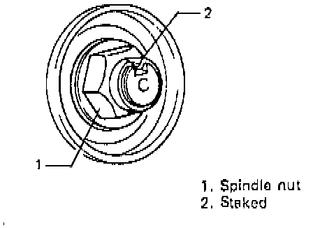 3. Uncalk spindle nut and remove spindle nut and washer.
