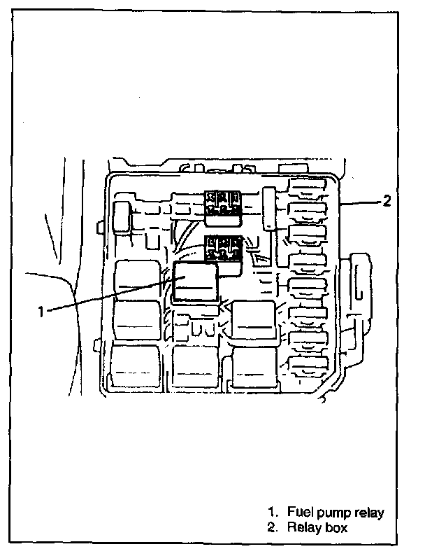 6. Upon completion of servicing, connect fuel pump relay to relay box and install relay box cover.