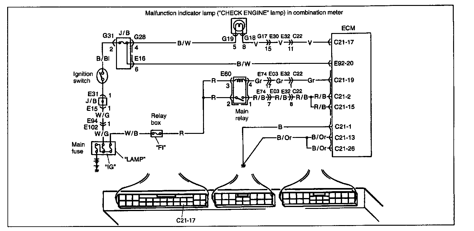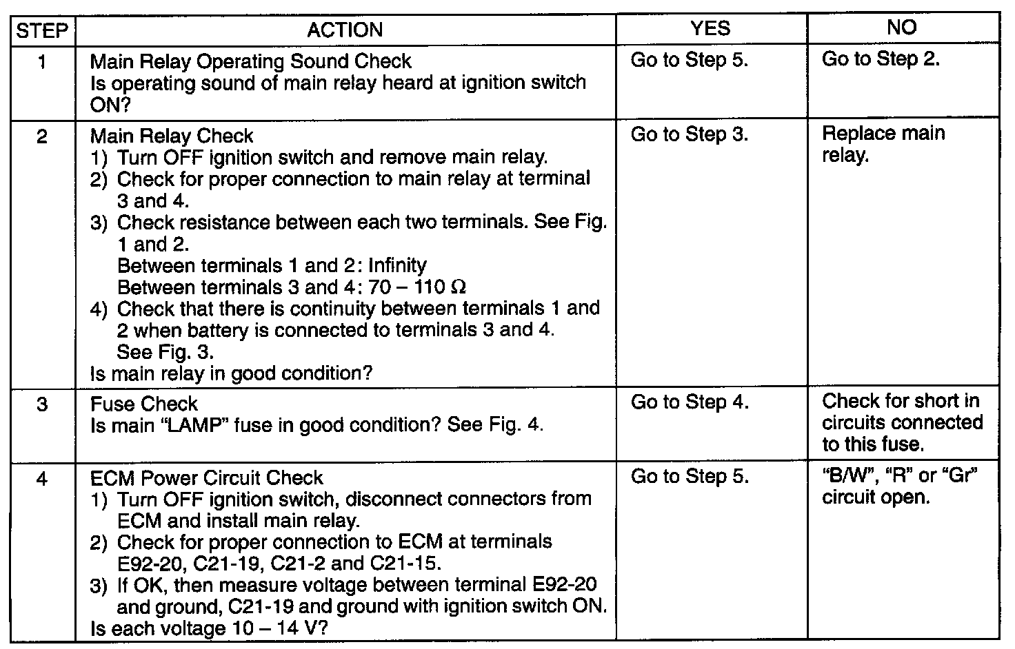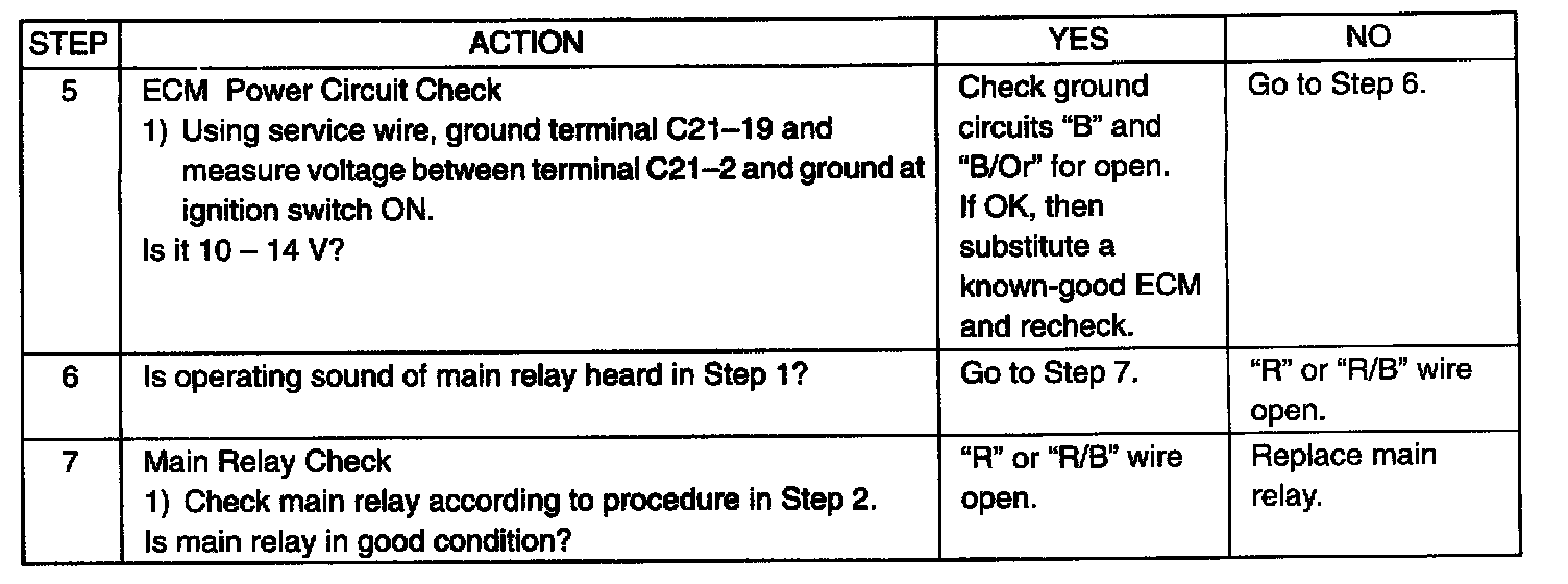 Table A-3 ECM (PCM) Power and Ground Circuit Check - MIL Doesn't Light At Ignition Switch on and Engine Doesn't Start Though it is Cranked UpWiring Diagram: