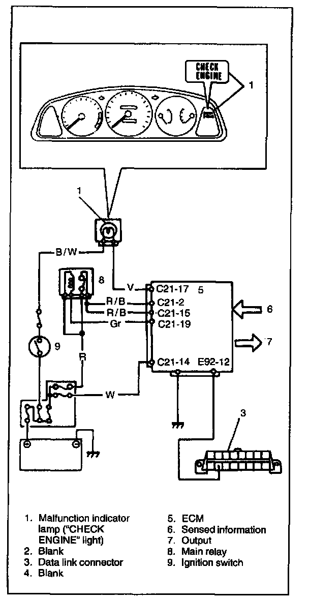 ECM and malfunction indicator lamp ("CHECK ENGINE" light) operate as follows.