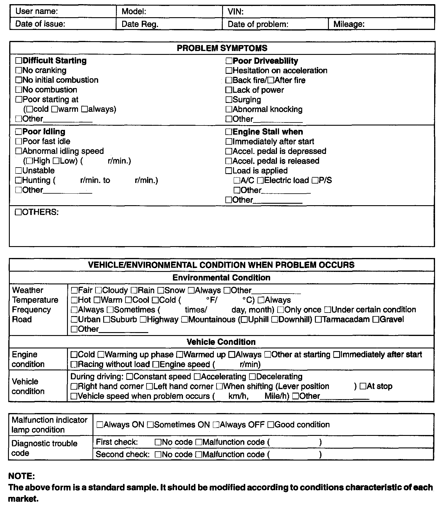 Customer Problem Inspection Form (Example)