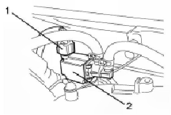 1. With ignition switch at OFF position disconnect coupler (1) from EVAP canister purge valve (2).