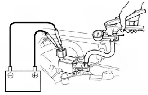 4. Keeping the 12V-battery connected to the terminals of EVAP canister purge valve and apply vacuum to outlet nozzle of EVAP canister purge valve by using special tool as described above. If vacuum can not held the EVAP canister purge valve is in good condition. If the vacuum is held replace EVAP canister purge valve with new one.