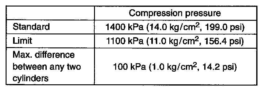 COMPRESSION CHECKCheck compression pressure on all four cylinders as follows: