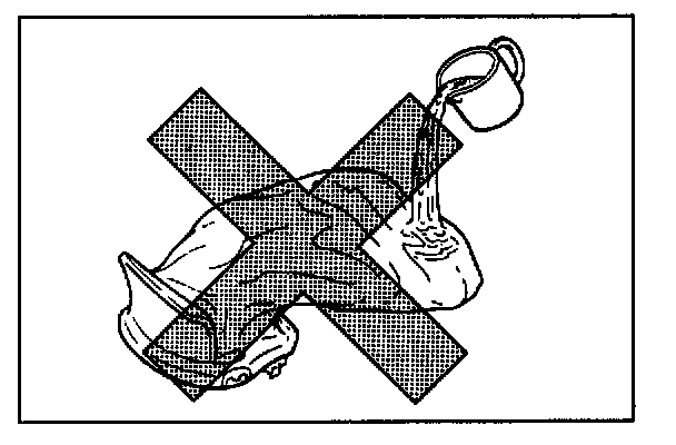Never apply water, oil, etc. to deployed air bag (inflator) module to cool it off and be careful so that water, oil etc. does not get on the deployed air bag (inflator) module.