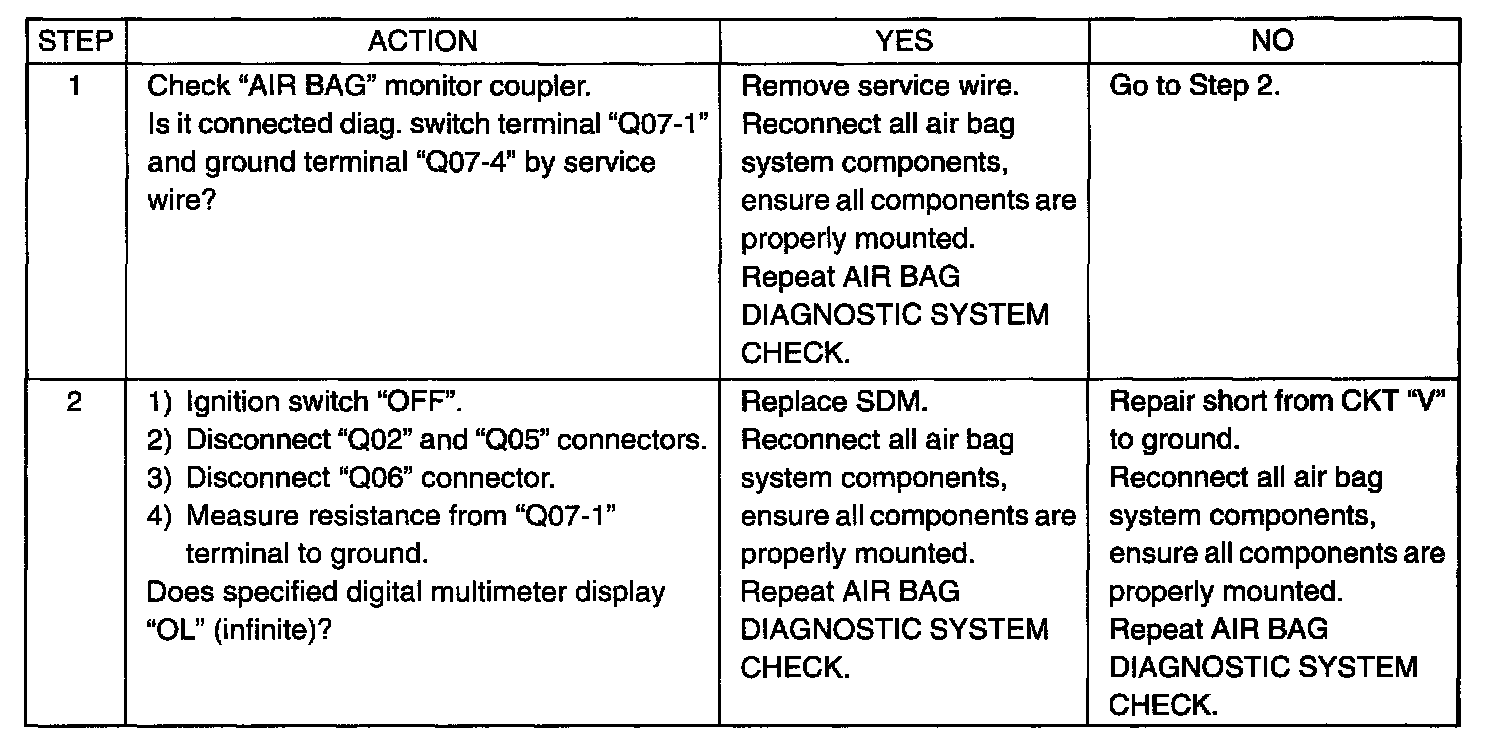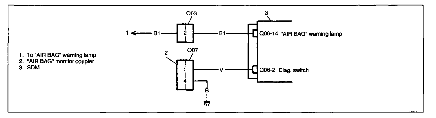 1. This test checks for a short between Diag. switch and ground terminals in "AIR BAG" monitor coupler by service wire.