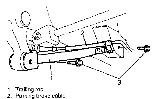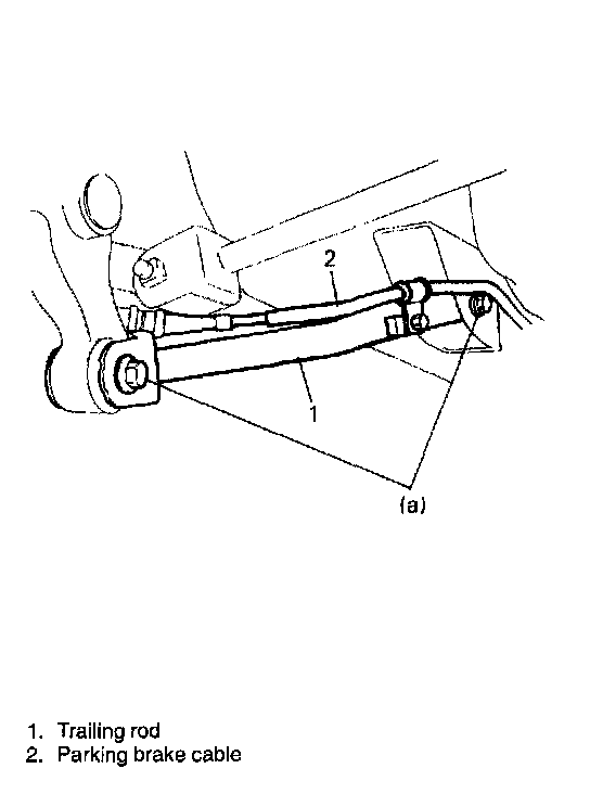 2. Detach parking brake cable clamp from trailing rod.