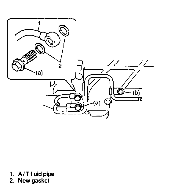 NOTE: Make sure to use new gaskets for A/T fluid pipe union bolts.