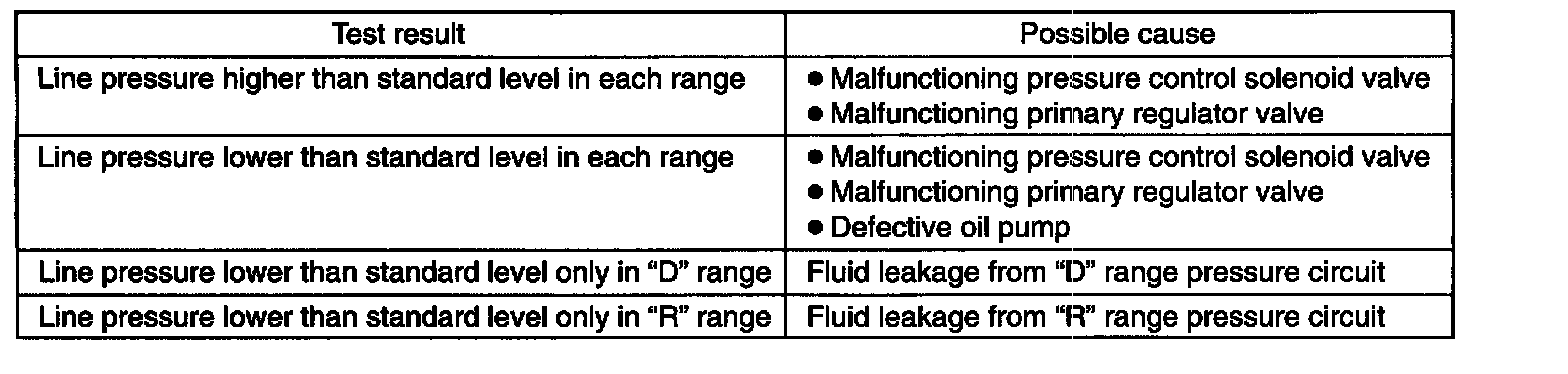 LINE PRESSURE TESTPurpose of this test is to check operating conditions of each part by measuring fluid pressure in fluid pressure line.