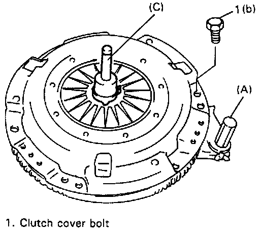 NOTE: Before assembling, make sure that flywheel surface and pressure plate surface have been cleaned and dried thoroughly.