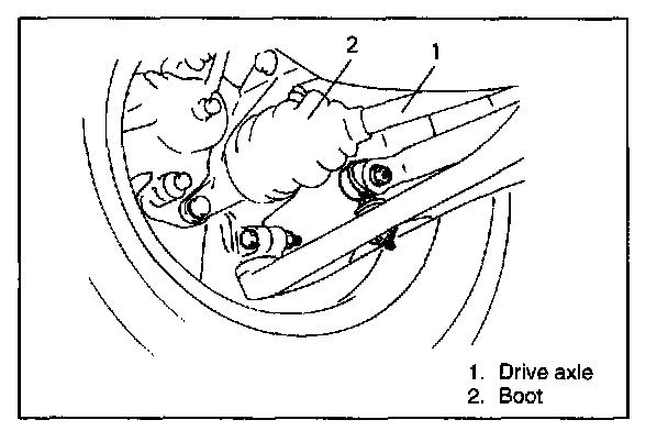 Check drive axle boots (wheel side and differential side) for leakage, detachment, tear or any other damage.
