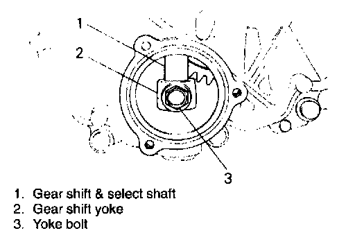 2. Remove gear shift yoke bolt.