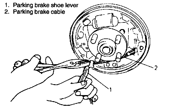 4. Disconnect parking brake shoe lever from parking brake cable.