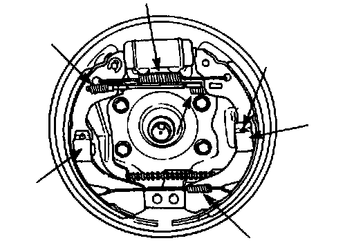 3. Remove return springs, brake shoes and strut.