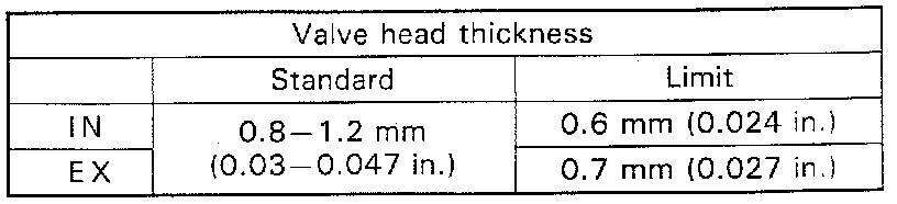 Valve Head Thickness