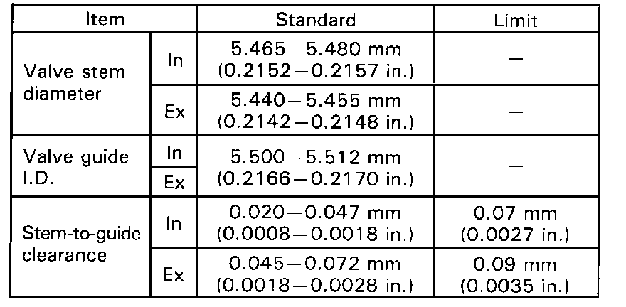 Valve Stem Diameter and Clearance