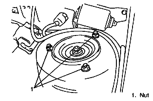 6. Remove strut support nuts. Hold strut by hand so that it will not fall off.