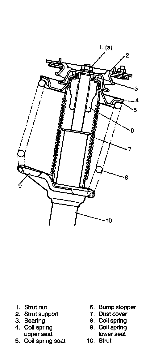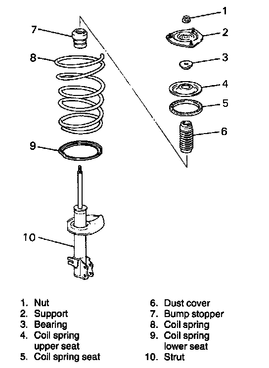 STRUT ASSEMBLYNOTE: When disassembling strut assembly, loosen strut nut a little before removing strut assembly from vehicle. This will make disassembly easier. Note, however, nut must not be removed at this point.