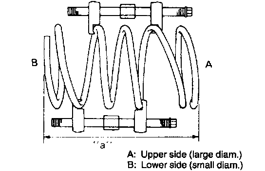1. Compress spring with special tool (A) until total length becomes about 250 mm (9.8 inch) as shown.