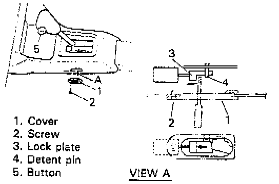 2. Turn ignition key to "ACC" position and move lock plate toward front side of vehicle by using screw driver or the like until detent pin becomes free.