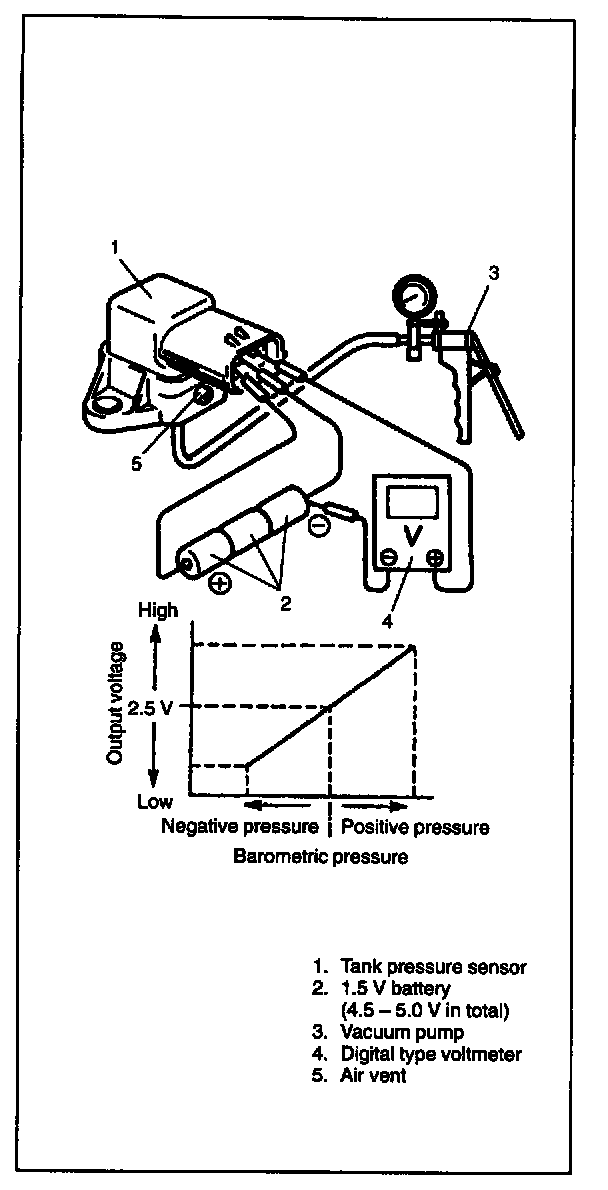 - Do not apply pressure higher than 98 kPa (742 mmHg) to tank pressure sensor by hand pump. Applying excessive pressure will break it.