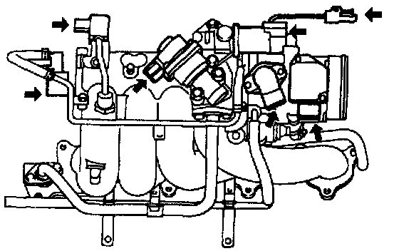 ^ Fuel pressure regulator vacuum hose to intake manifold