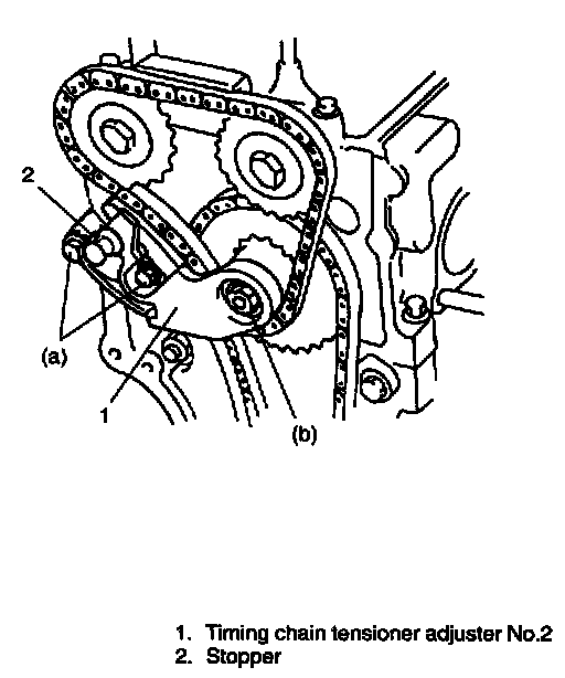 8. Install timing chain tensioner adjuster No.2 and gasket.
