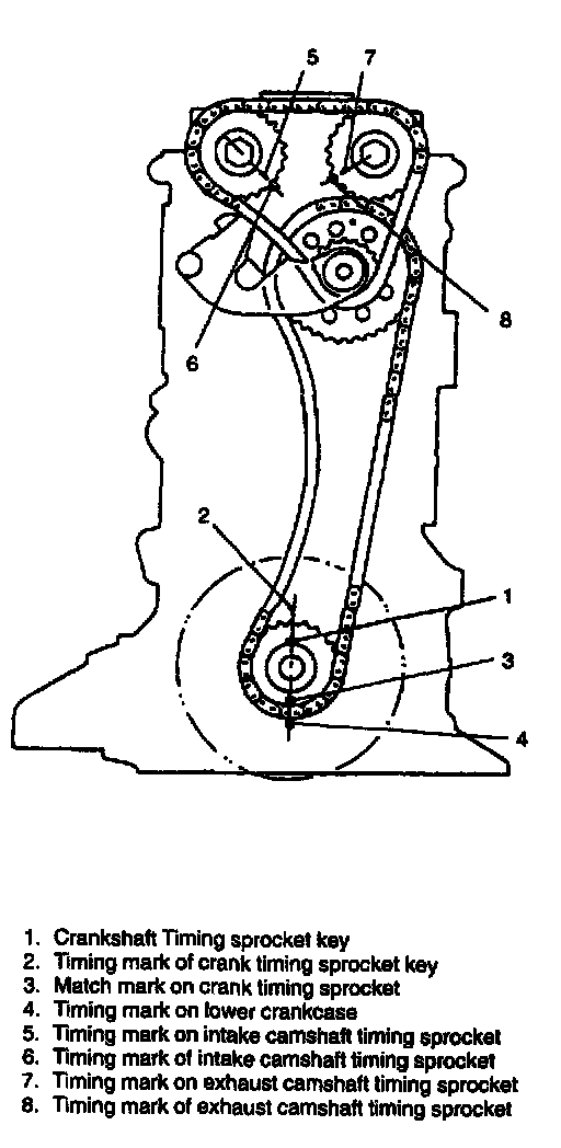 1. Check that match mark on crank timing sprocket is in match with timing mark on lower crankcase as shown in figure.