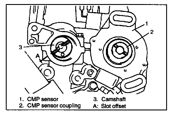 Fit the dog of CMP sensor coupling into the slots of camshaft, when installing. The dogs of CMP sensor coupling are offset. Therefore, if the dogs can not be fitted into the slots, turn the CMP sensor shaft by 180 degree and try again.