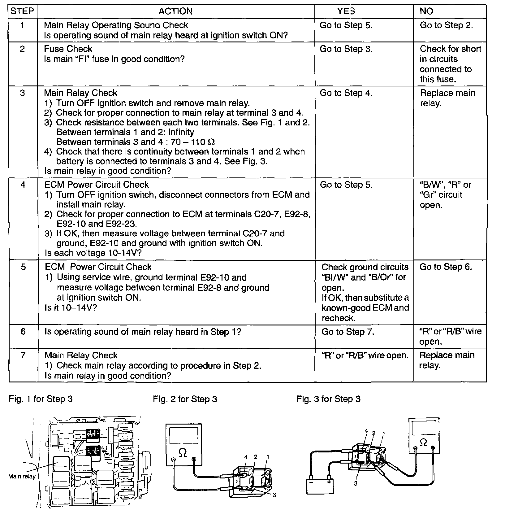 When the ignition switch tuned ON, the main relay turns ON (the contact point closes) and the main power is supplied to ECM.