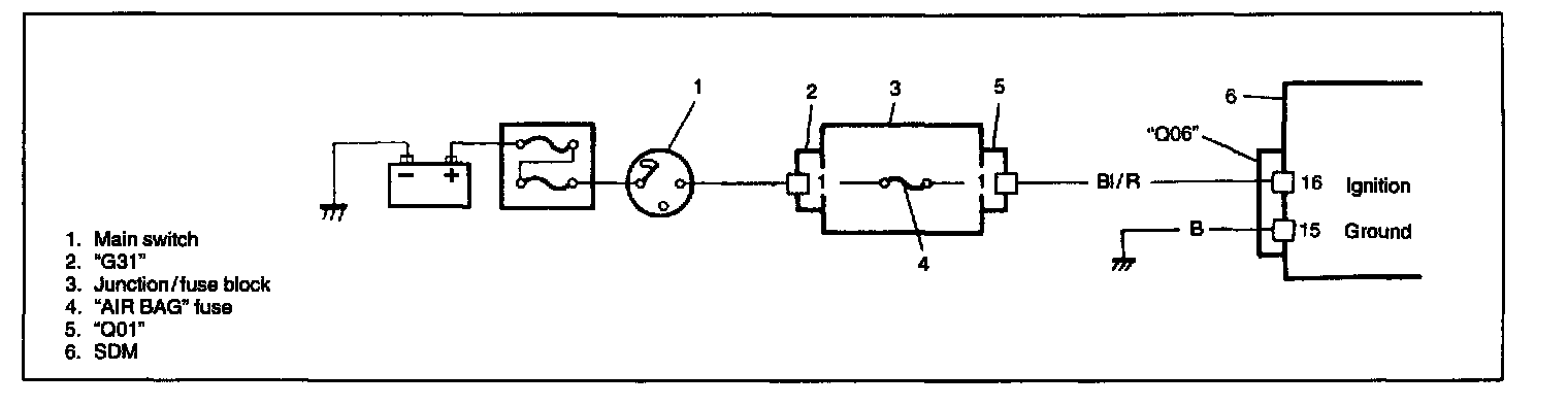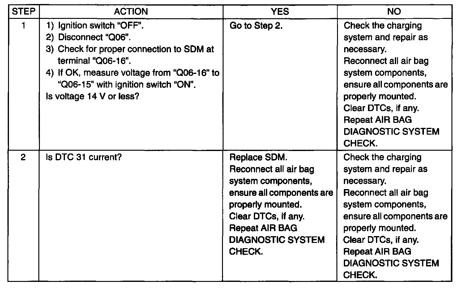 The ignition voltage at SDM terminal "Q06-16" is above a specified value for specified time.
