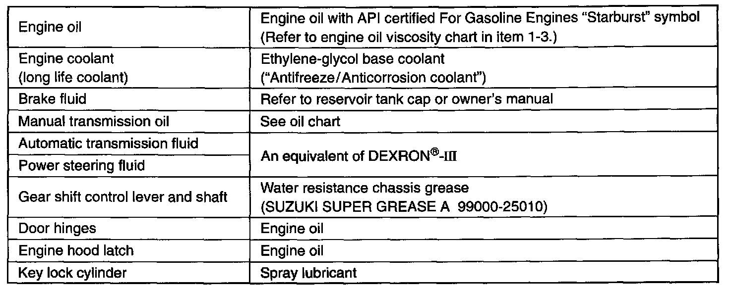 Recommended Fluids and Lubricants