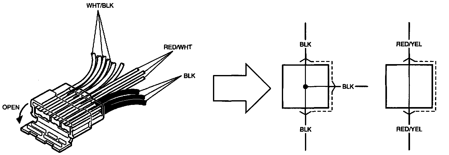 - In the pin numbers for joint connectors are omitted because all the same color wires are connected with each other inside the joint connectors, the structure of which can be seen by opening the connector head as shown.